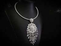 Beautiful Pikun Lotus Flower pendant embellished with freshwater pearls on an 18" twisted Italy omega chokerwoven rope collar + 1 inch extender.